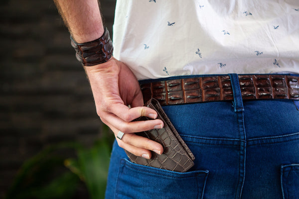 Elevate your style with our collection of crocodile leather belts, crafted from premium Australian saltwater crocodile leather. Each belt features a unique, textured pattern that adds a touch of luxury to any outfit. Whether you're looking for a sleek accessory for formal occasions or a stylish finish for everyday wear, these belts combine timeless elegance with exceptional durability. Perfect for both men and women, our belts are a lasting investment in refined style and quality.