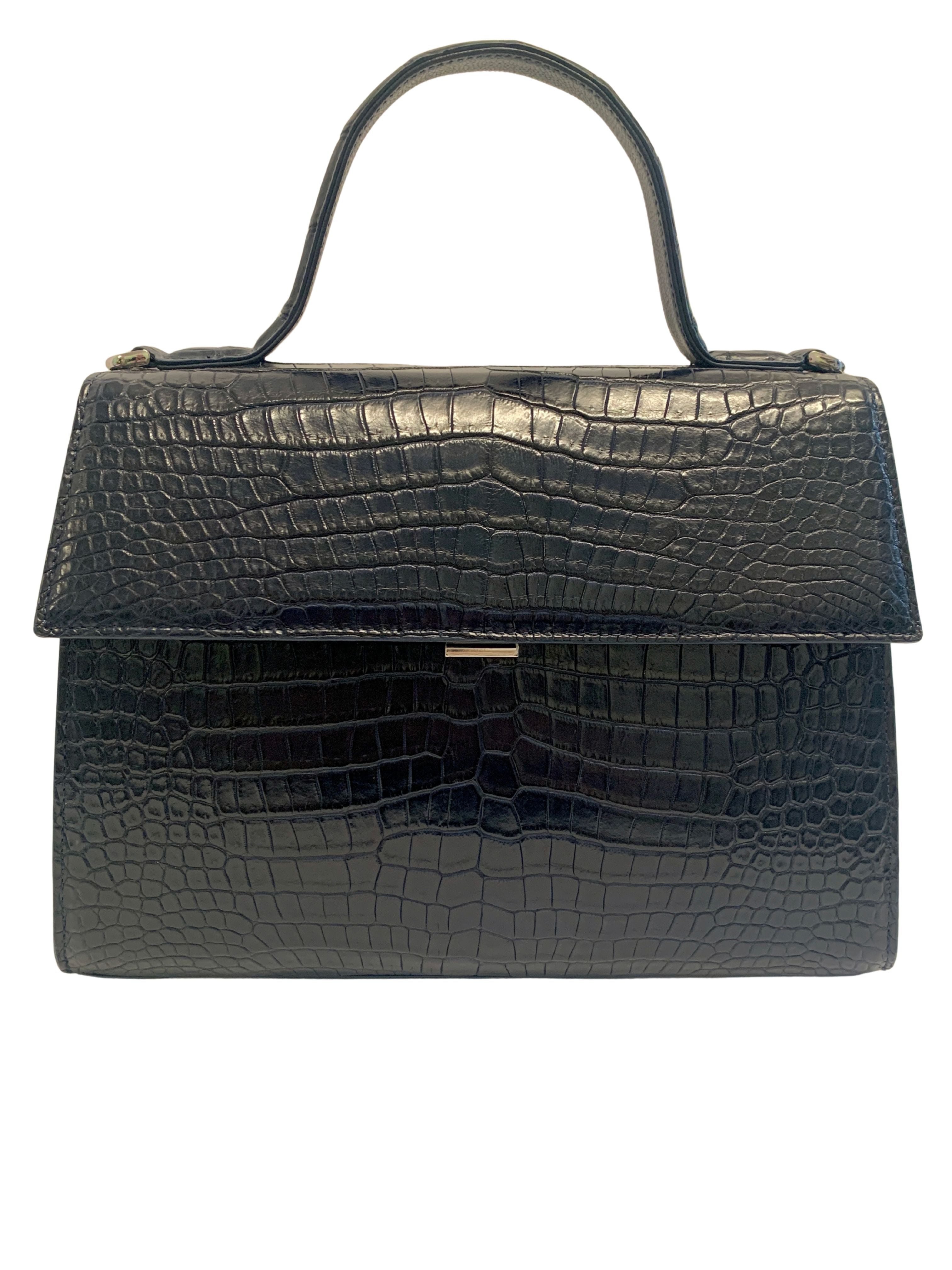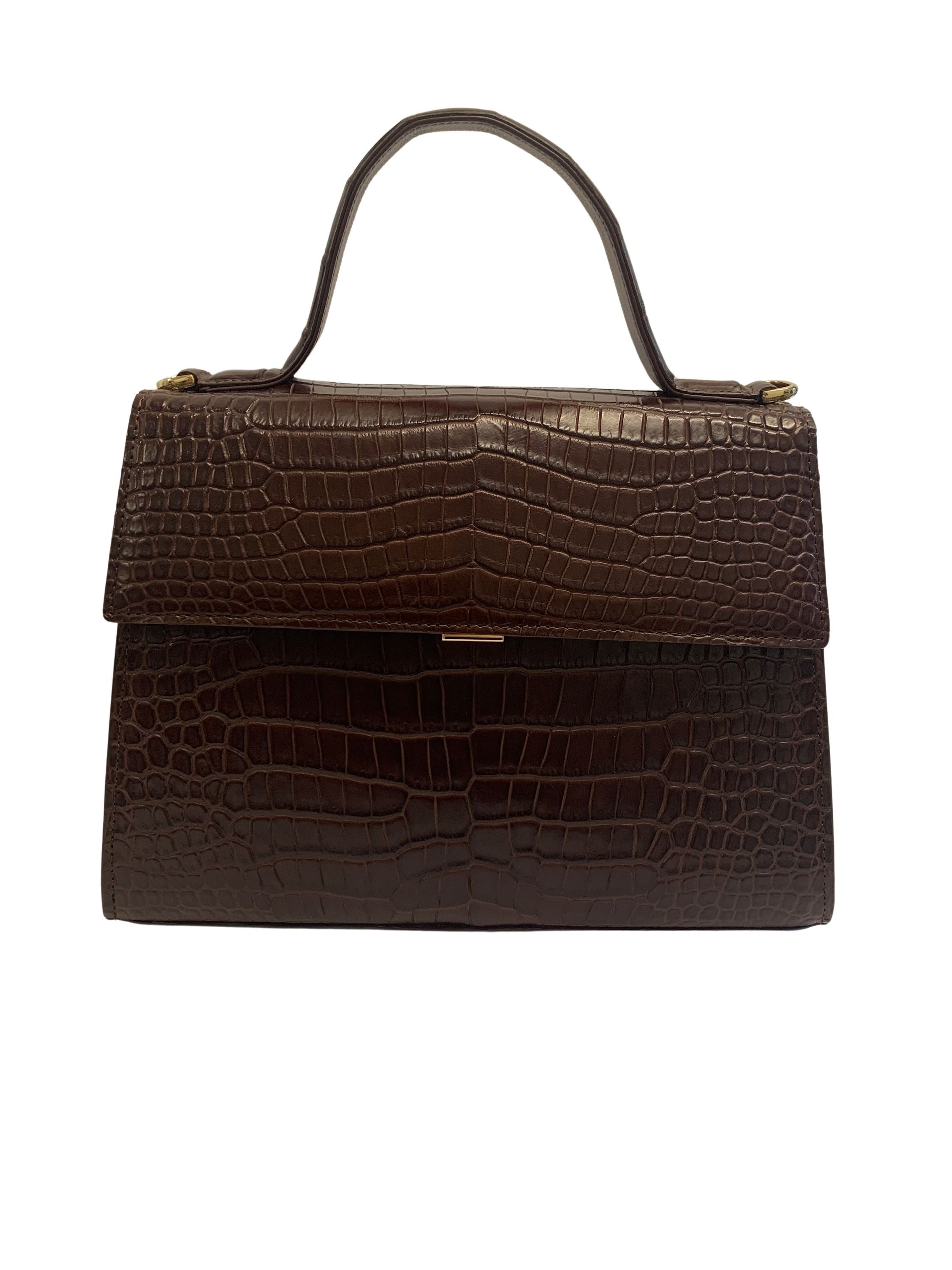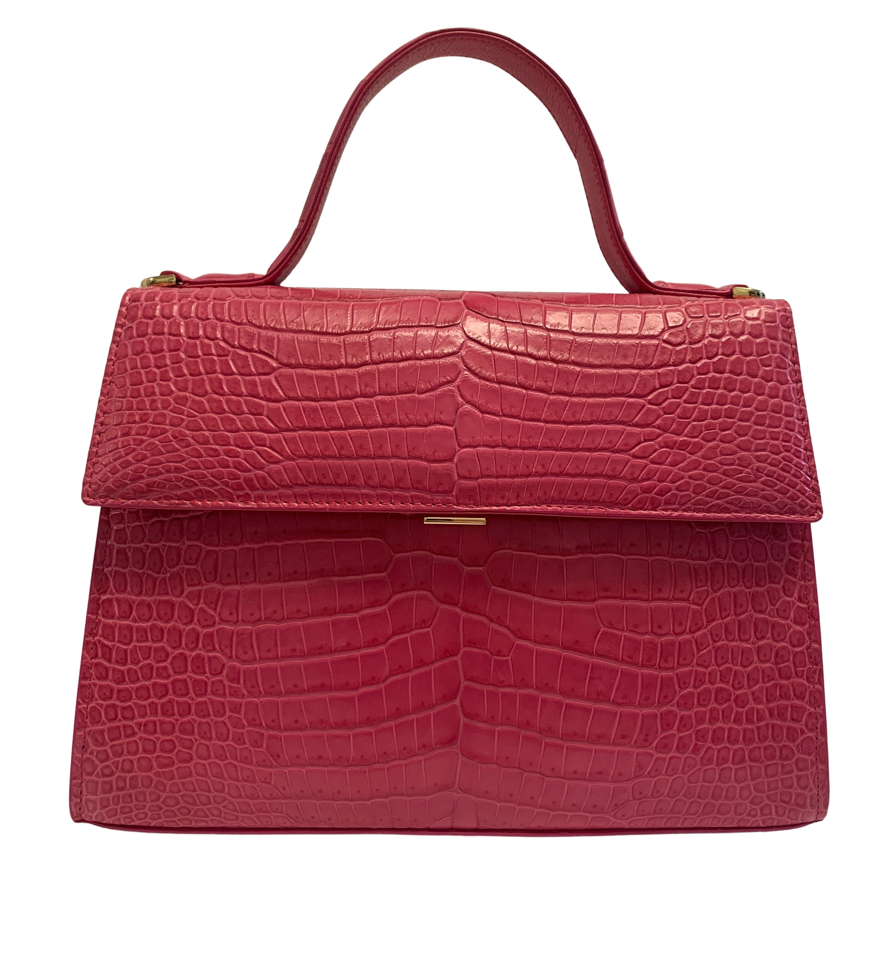 A timeless design, Arley Rae's crocodile leather Fay handbag speaks classic elegance. This medium handbag features a large secured main compartment with interior side pockets for your accessories. An additional exterior pocket adds convenience for frequently accessed items. A removable strap adds carrying convenience for when you need both hands free.