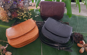 The Shaniya bag is a timeless saddlebag with a modern twist. Crafted from luxurious Saltwater crocodile leather, it combines sophistication with practicality. Compact yet spacious, the main compartment is secured with a fold-over magnetic flap, keeping your essentials organized and secure. The adjustable strap offers versatile styling, allowing you to wear it as a crossbody or shoulder bag. Perfect for everyday use or elevating evening looks, the Shaniya bag is both chic and functional.