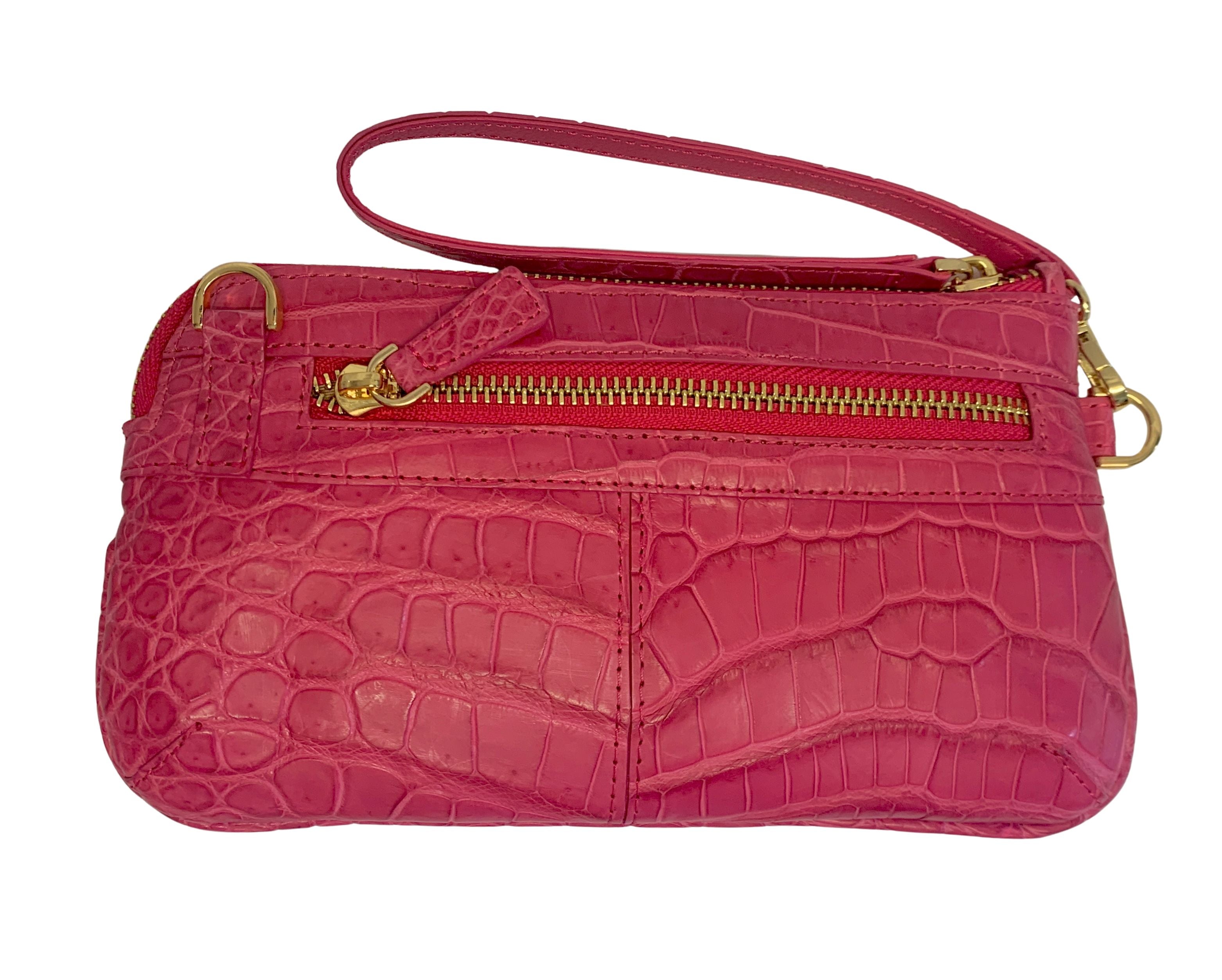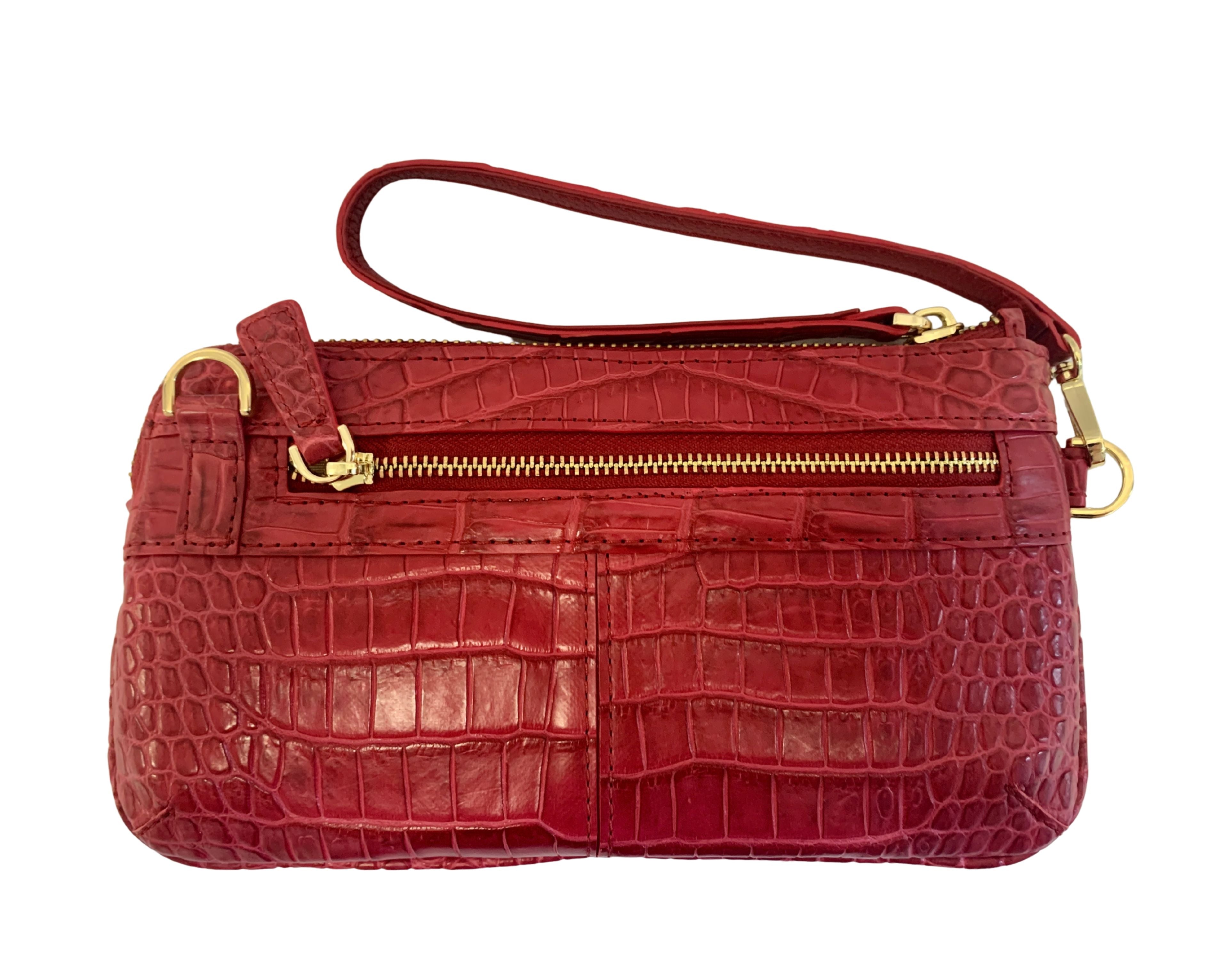 Introducing The Skye - the ultimate accessory for fashion-forward individuals. Made from luxurious AR crocodile leather, this sleek and small over-shoulder bag features a detachable strap and main zip for versatile wear. It can also transform into a chic clutch, making it perfect for any occasion. Upgrade your style game with The Skye!