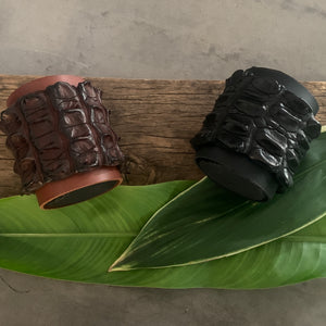 Elevate your essentials with our Crocodile Leather Stubby Coolers and Hipflasks. Crafted from authentic crocodile leather, each piece features a unique, textured pattern for a bold, sophisticated look. The stubby coolers offer superior insulation for your drinks, while the sleek hipflasks combine style with practicality. Perfect for those who appreciate luxury and functionality, these accessories are a timeless addition to any collection.